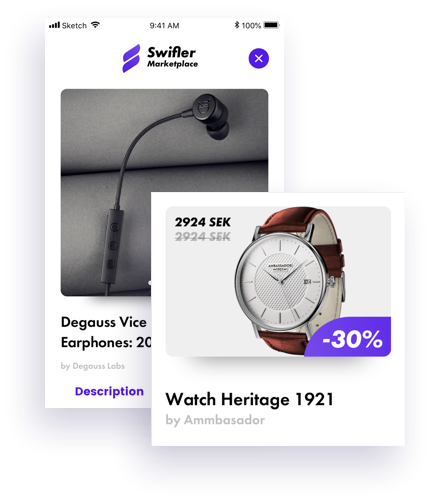 Swifler är en SaaS widget lösning. Ingen lång installationsprocess för att komma igång, inget behov av ett helt utvecklingsteam eller att spendera timmar på anpassning och implementering - vi har spenderat timmarna åt er! Lösningen kan användas på dina befintliga annonser med liten eller ingen förändring, på iframes, webbvyer men även textlänkar.